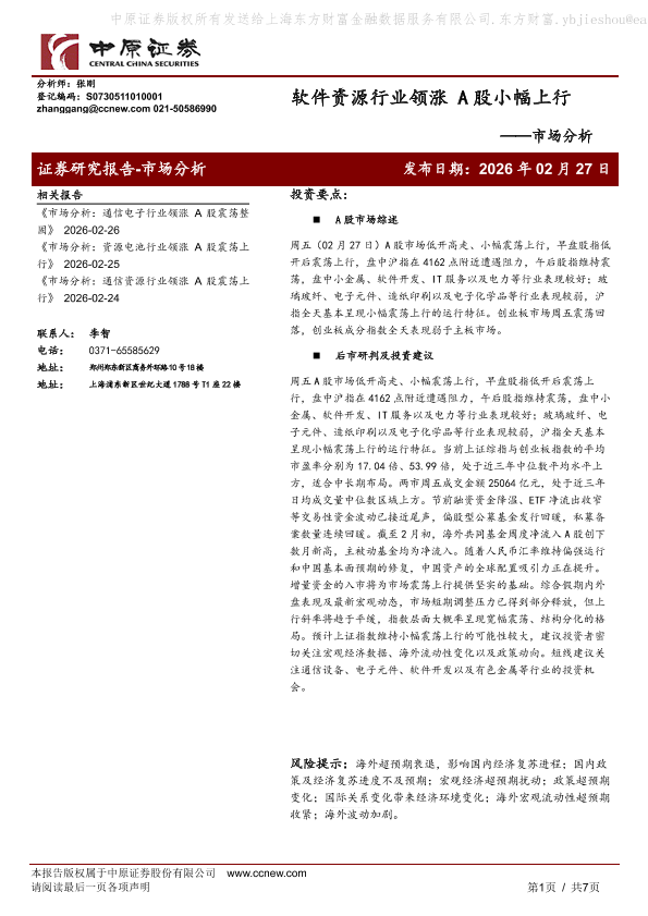 【中原证券】【202602】软件资源行业领涨 A股小幅上行-7页