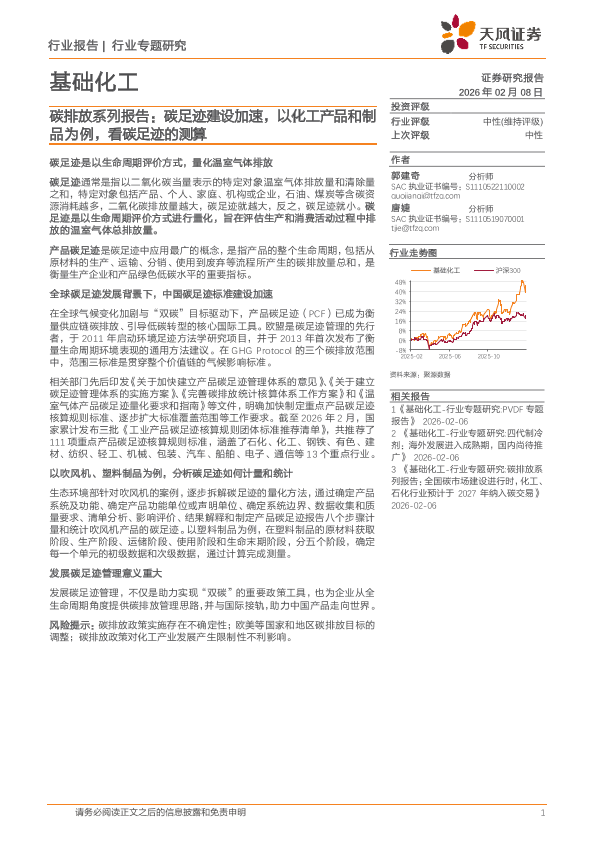 【天风证券】【202602】基础化工行业碳排放系列报告:碳足迹建设加速,以化工产品和制品为例,看碳足迹的测算-15页