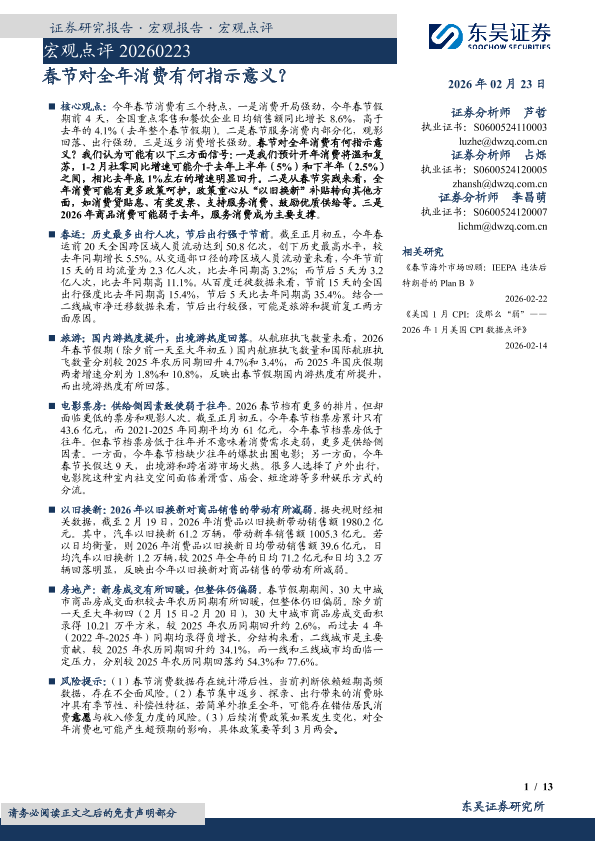 【东吴证券】【202602】宏观点评 20260223-13页