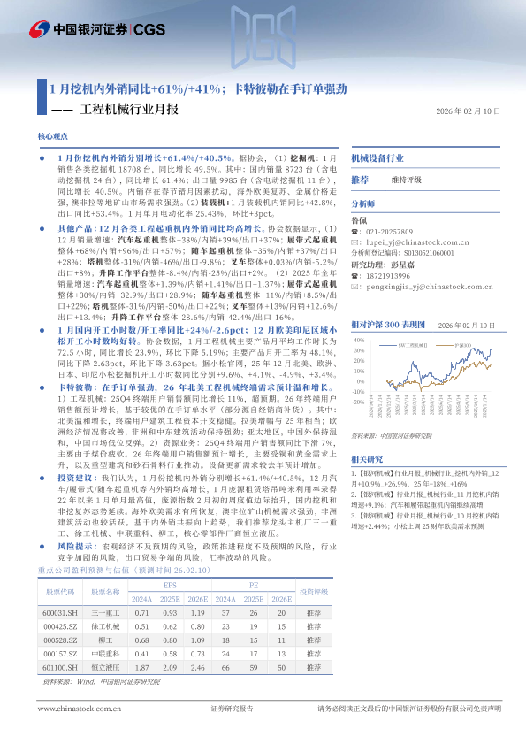 【银河证券】【202602】1月挖机内外销同比+61%/+40%;卡特彼勒在手订单强劲——工程机械行业月报-18页