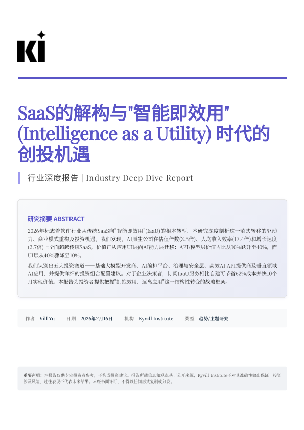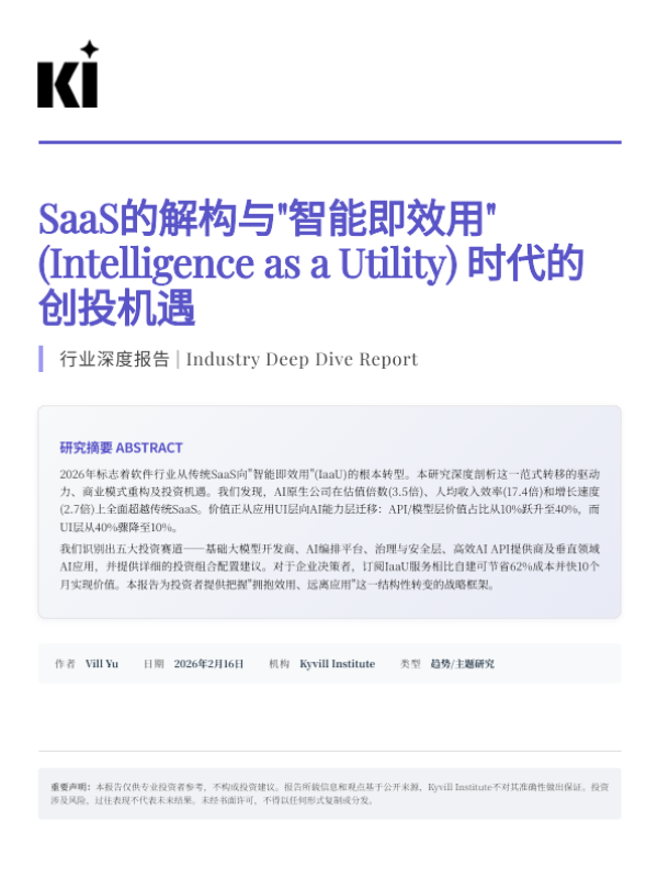 【Kyvill Institute】【202602】SaaS的解构与'智能即效用W(Intelligence as a Utility) l时代的创投机遇-26页