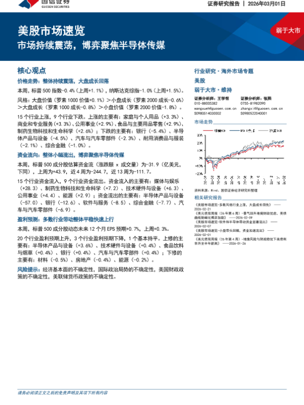 【国信证券】【202603】美股市场速览-市场持续震荡,博弈聚焦半导体传媒-17页