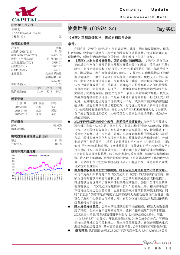 【群益证券 ( 香港 ) 有限公司】【202603】《异环》三测反馈优异,正式定档四月公测-3页