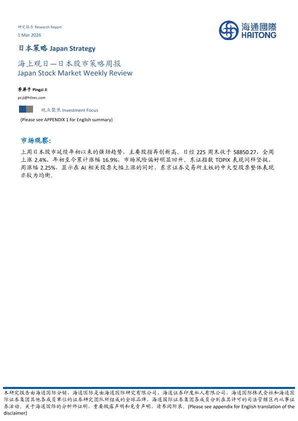 【海通国际】【202603】海上观日—日本股市策略周报 Japan Stock Market Weekly Review-12页