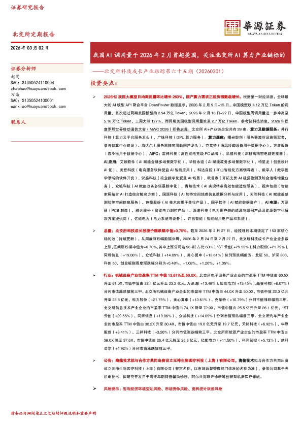【华源证券】【202603】我国AI调用量于2026年2月首超美国,关注北交所AI算力产业链标的-18页