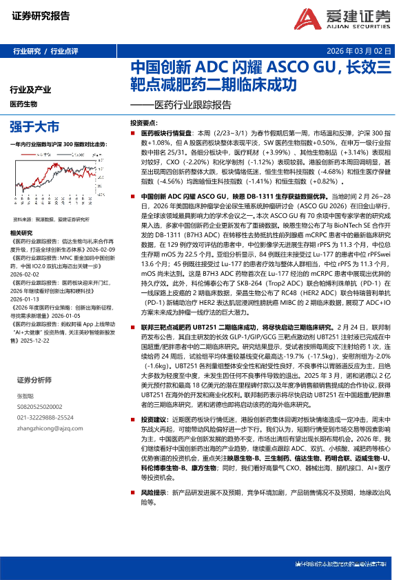【爱建证券】【202603】医药行业跟踪报告:中国创新ADC闪耀ASCO GU,长效三靶点减肥药二期临床成功-2页