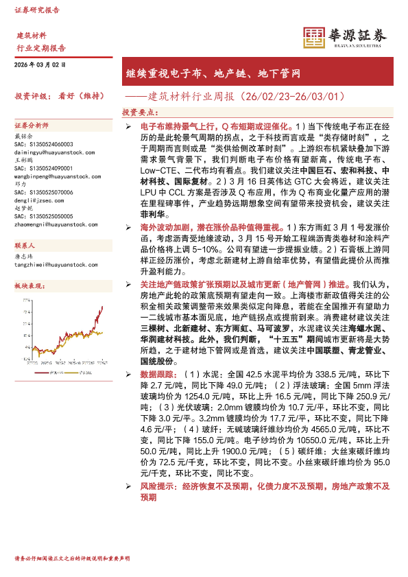 【华源证券】【202603】继续重视电子布、地产链、地下管网——建筑材料行业周报(26/02/23-26/03/01)-14页