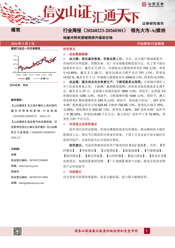 【山西证券】【202603】煤炭行业周报(20260223-20260301)领先大市-A(维持)地缘冲突有望继续推升煤炭价格-16页