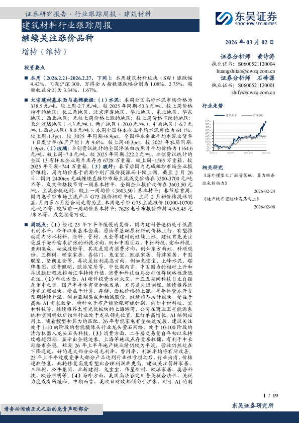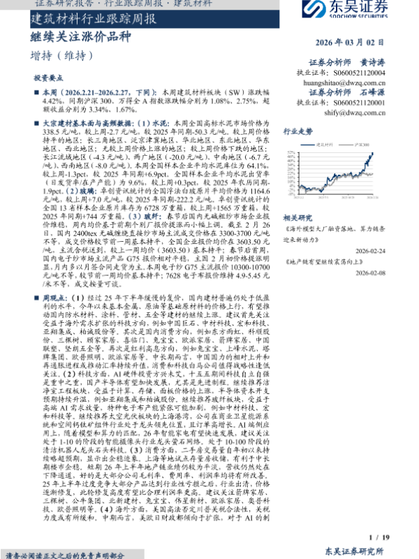 【东吴证券】【202603】建筑材料行业跟踪周报·继续关注涨价品种-19页