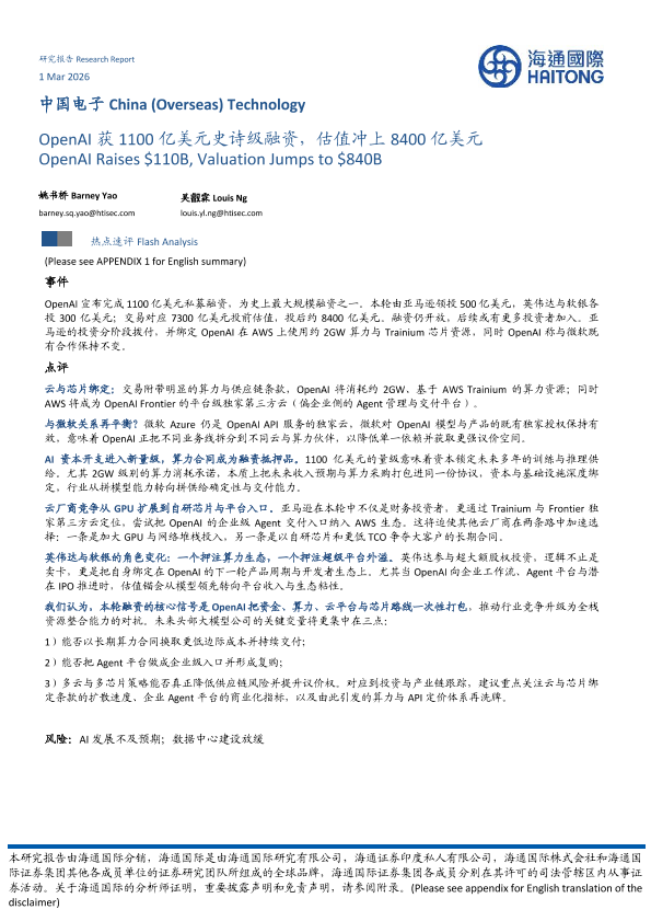【海通国际】【202603】OpenAI获1100亿美元史诗级融资,估值冲上8400亿美元-9页