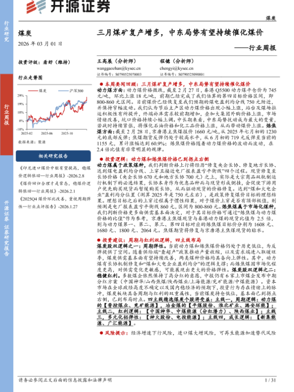 【开源证券】【202603】三月煤矿复产增多,中东局势有望持续催化煤价——行业周报-31页