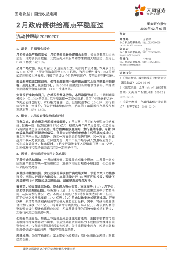 【天风证券】【202602】2月政府债供给高点平稳度过-22页