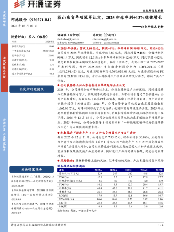 【开源证券】【202603】邦德股份(920271.BJ)北交所信息更新:获山东省单项冠军认定,2025归母净利+13%稳健增长-4页