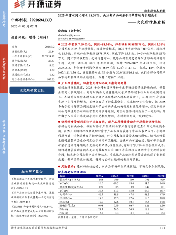 【开源证券】【202603】北交所信息更新:2025年营收同比增长18.34%,关注新产品耐磨管订单落地与长期成长-4页