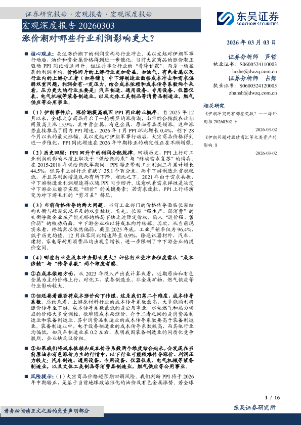 【东吴证券】【202603】涨价潮对哪些行业利润影响更大?-16页