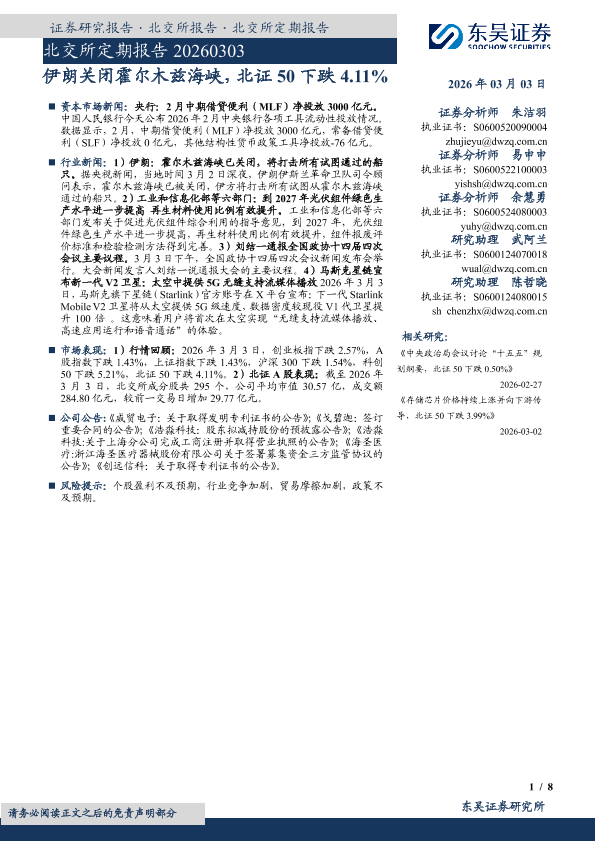 【东吴证券】【202603】伊朗关闭霍尔木兹海峡,北证 50下跌 4.11%-8页