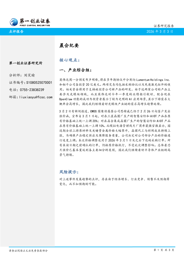 【第一创业证券】【202603】晨会纪要-3页