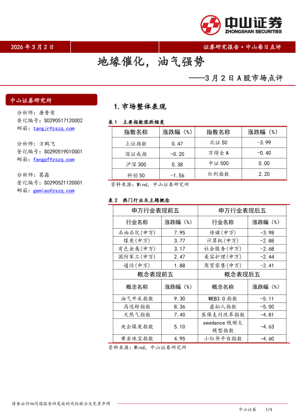 【中山证券】【202603】2026年 3月 2日 证券研究报告·中山每日点评 地缘催化,油气强势-4页