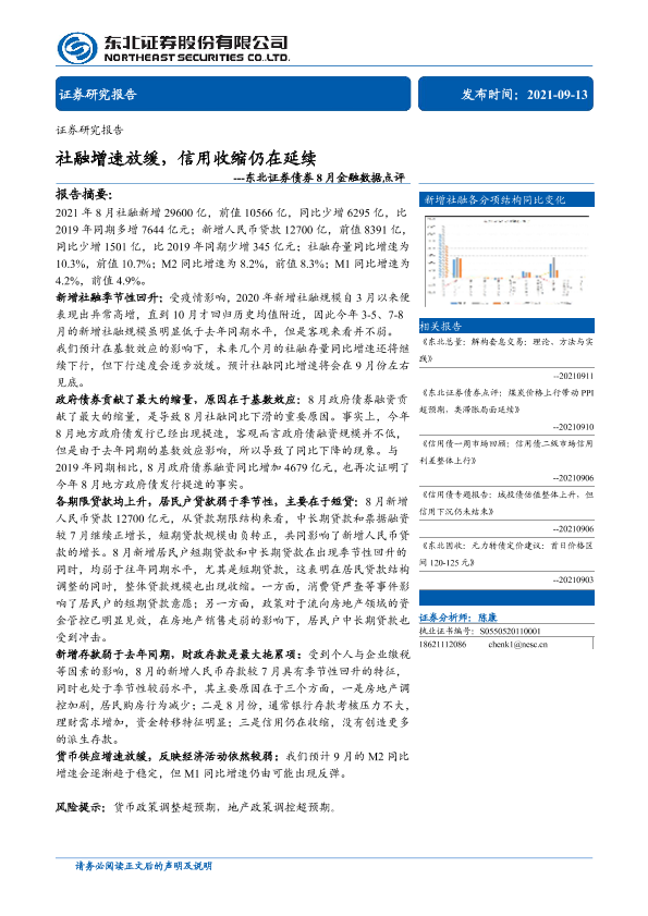 【东北证券】【20210913】债券8月金融数据点评:社融增速放缓,信用收缩仍在延续-15页