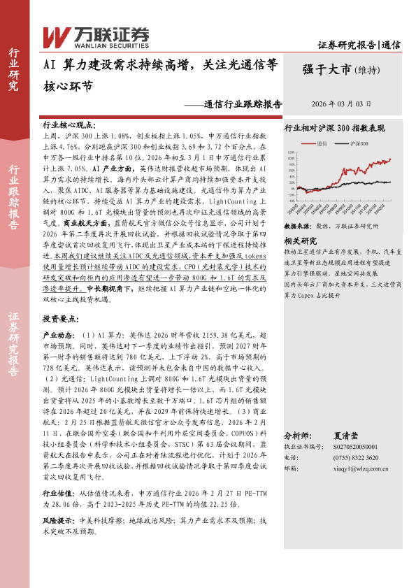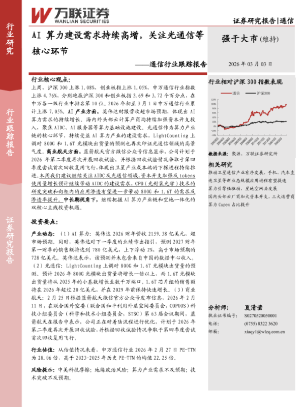 【万联证券】【202603】AI算力建设需求持续高增,关注光通信等核心环节-6页