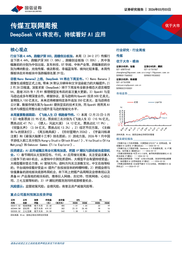 【国信证券】【202603】优于大市 传媒互联网周报-13页