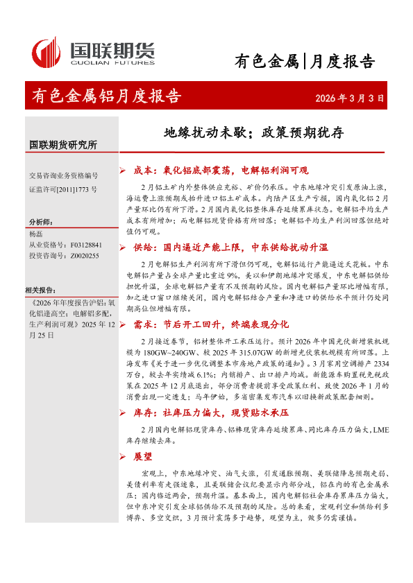 【国联期货研究所】【202603】有色金属铝月度报告-20页