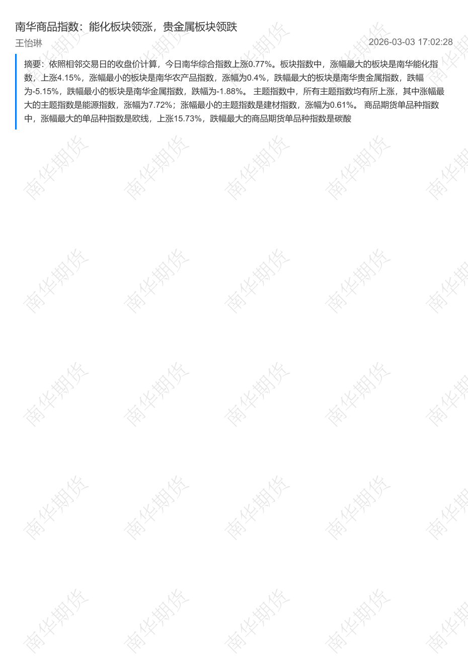 【南华期货】【202603】南华商品指数:能化板块领涨,贵金属板块领跌-2页