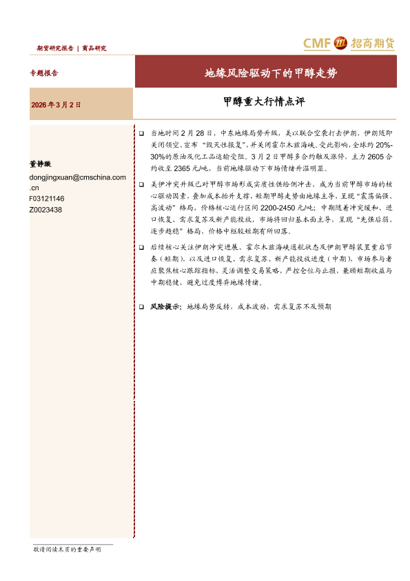 【招商期货】【202603】专题报告 地缘风险驱动下的甲醇走势_甲醇重大行情点评-7页