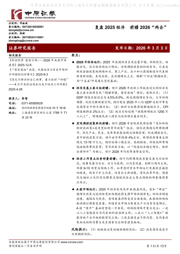 【中原证券】【202603】复盘2025经济前瞻2026“两会”-13页