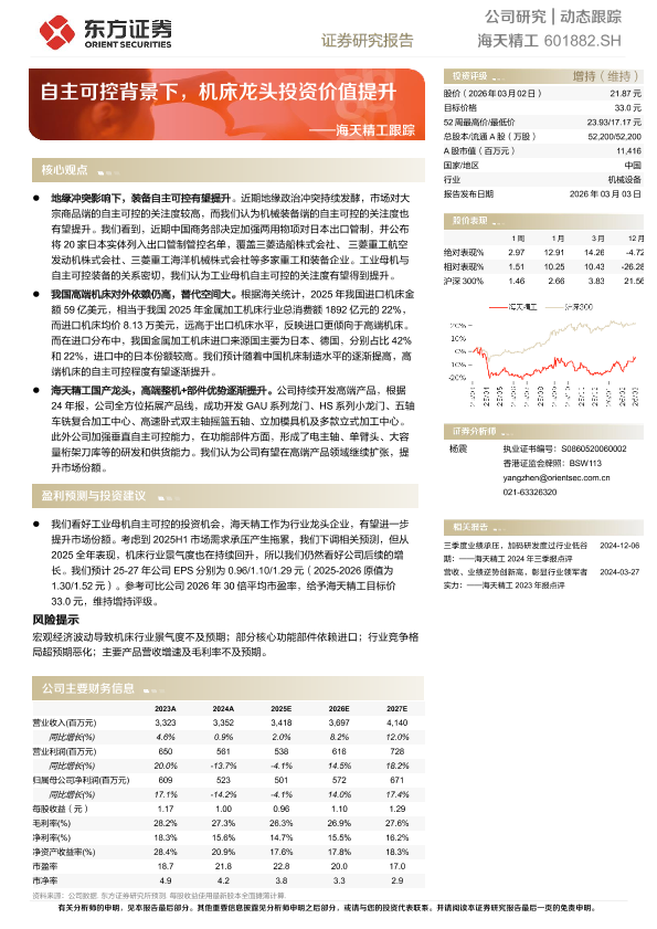 【东方证券】【202603】海天精工动态跟踪 ——自主可控背景下,机床龙头投资价值提升-5页