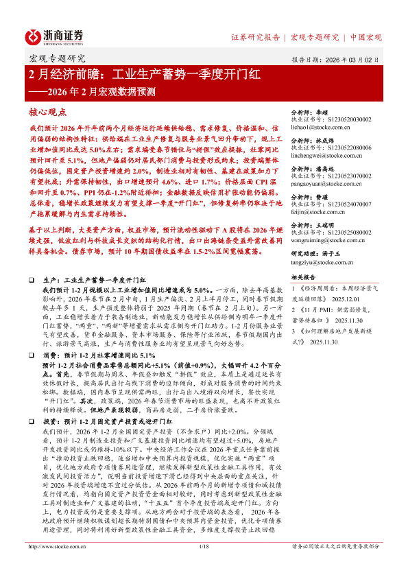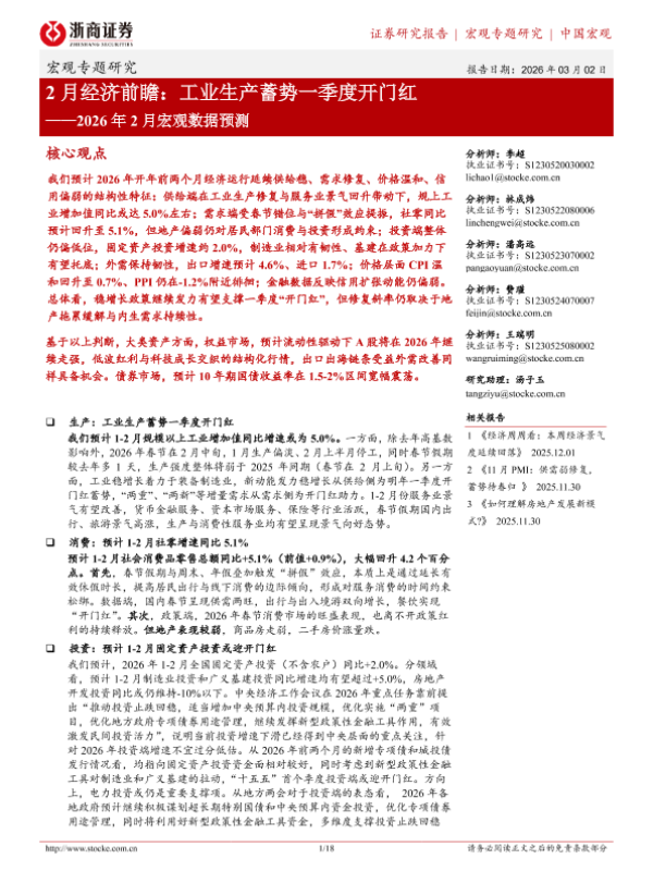 【浙商证券】【202603】2月经济前瞻:工业生产蓄势一季度开门红——2026年2月宏观数据预测-18页