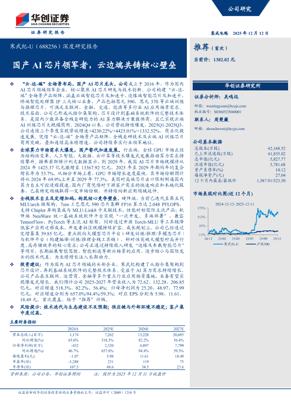 【华创证券】【202512】寒武纪-U(688256)深度研究报告:国产 AI芯片领军者,云边端共铸核心壁垒-37页