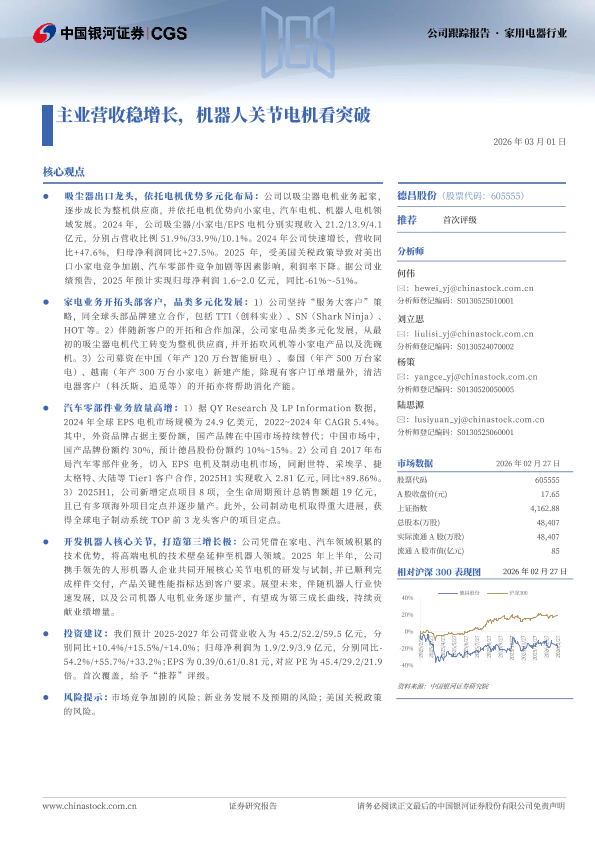 【银河证券】【202603】主业营收稳增长,机器人关节电机看突破-15页