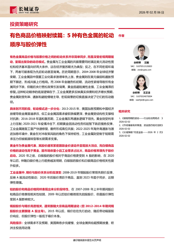 【长城证券】【202602】有色商品价格映射续篇:5种有色金属的轮动顺序与股价弹性-14页