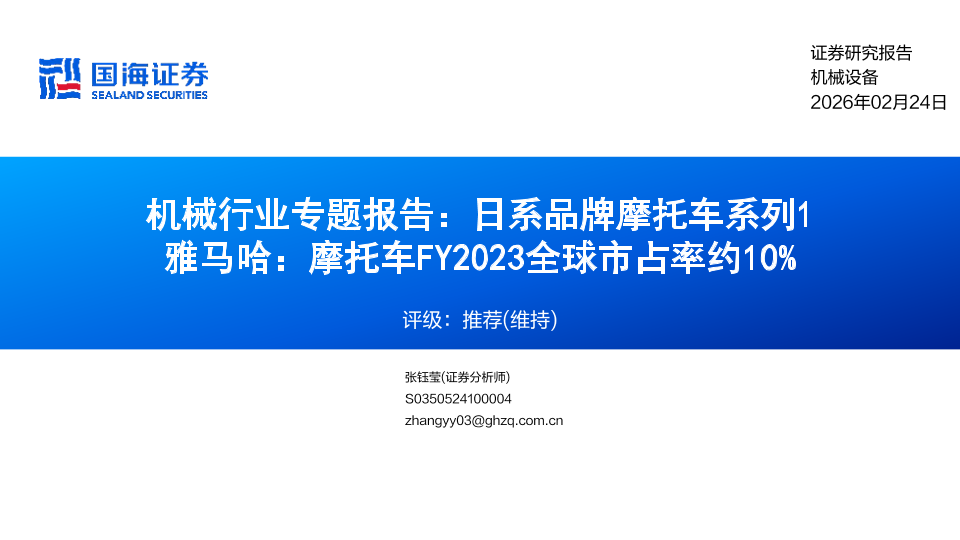 【国海证券】【202602】机械行业专题报告:日系品牌摩托车系列1 雅马哈:摩托车FY2023全球市占率约10%-16页