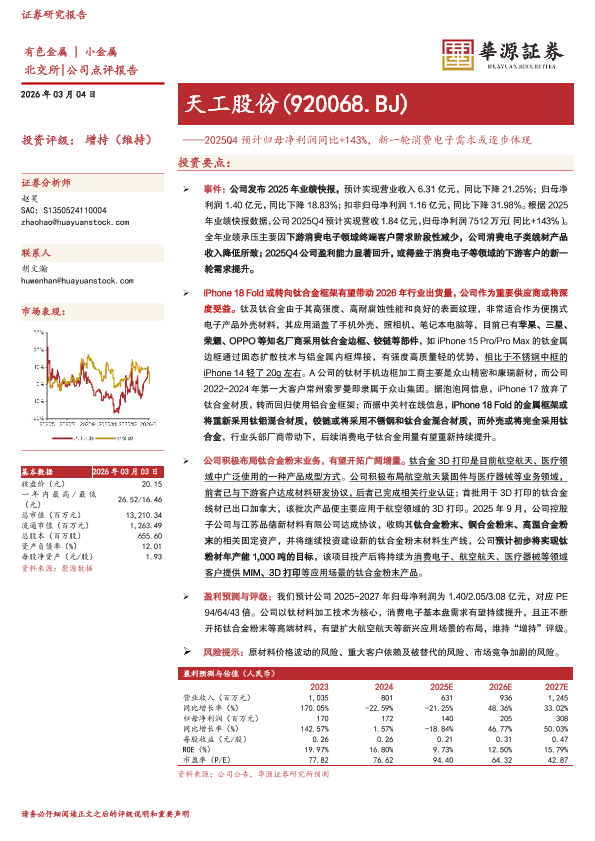 【华源证券】【202603】2025Q4预计归母净利润同比+143%,新一轮消费电子需求或逐步体现-3页