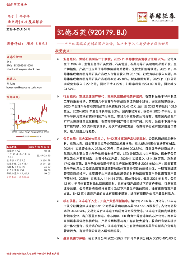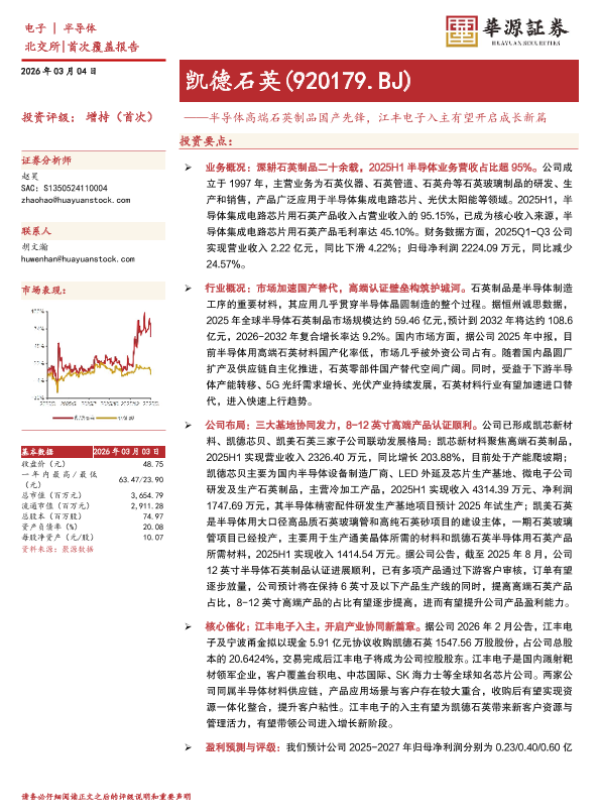 【华源证券】【202603】半导体高端石英制品国产先锋,江丰电子入主有望开启成长新篇-4页