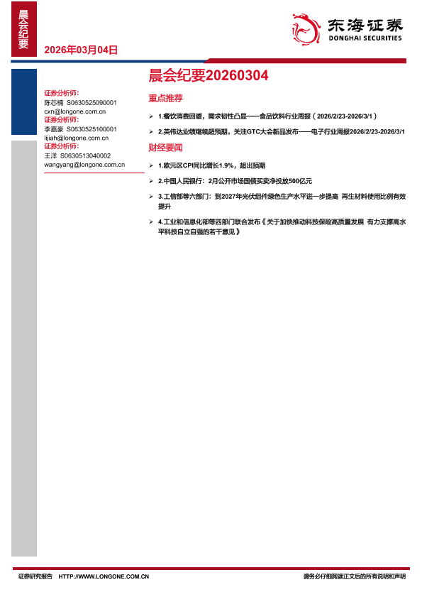 市场评述 AI算力 食品饮料 消费复苏 电子行业