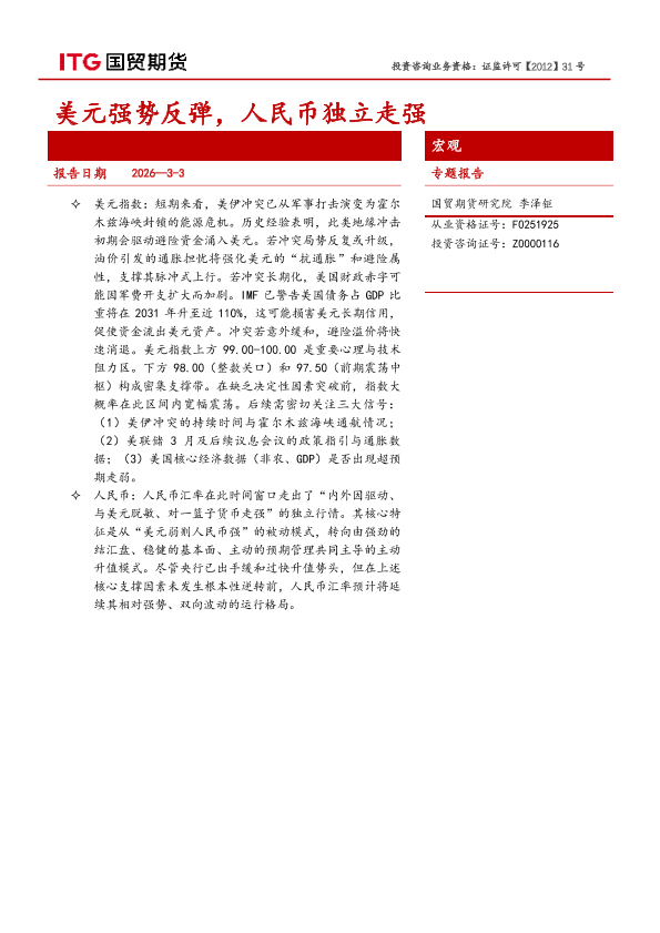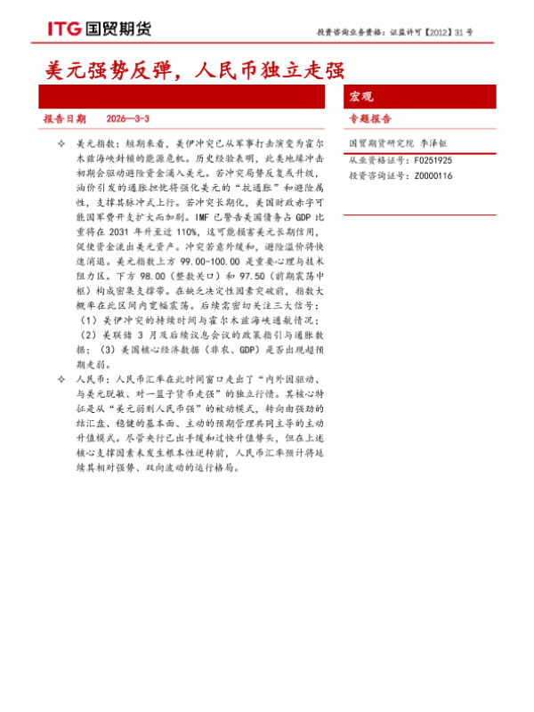 【国贸期货】【202603】美元强势反弹,人民币独立走强-6页