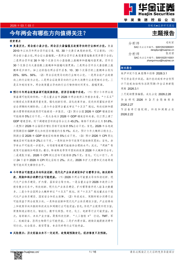 【华金证券】【202603】今年两会有哪些方向值得关注?-16页
