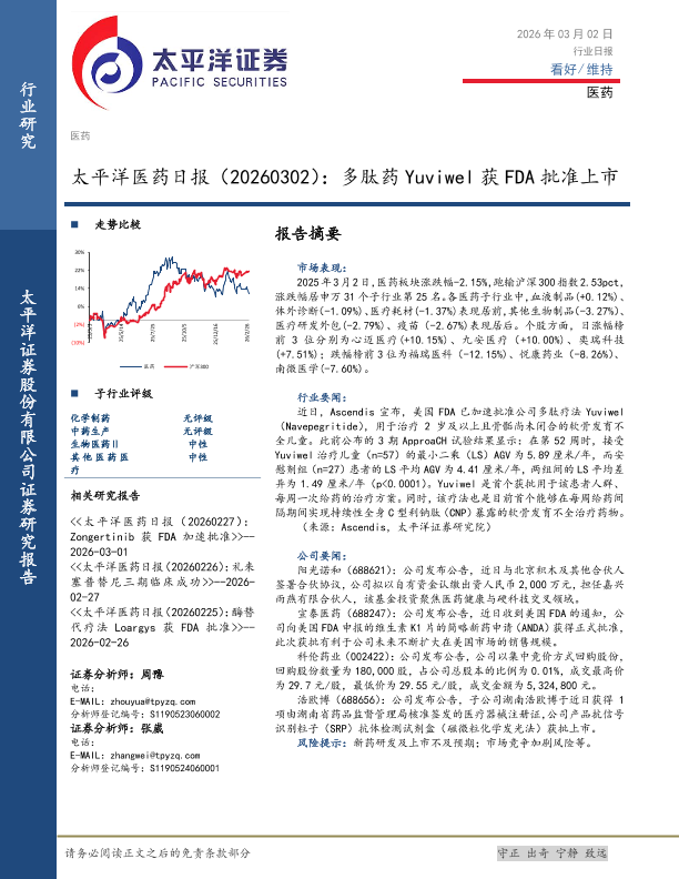 【太平洋证券】【202603】太平洋医药日报(20260302):多肽药 Yuv iwe l获 FDA批准上市-3页