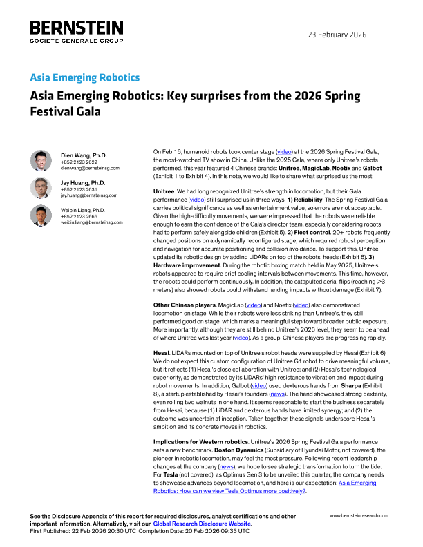 【Bernstein】【2026】亚洲新兴机器人行业:2026年春晚的核心惊喜-19页