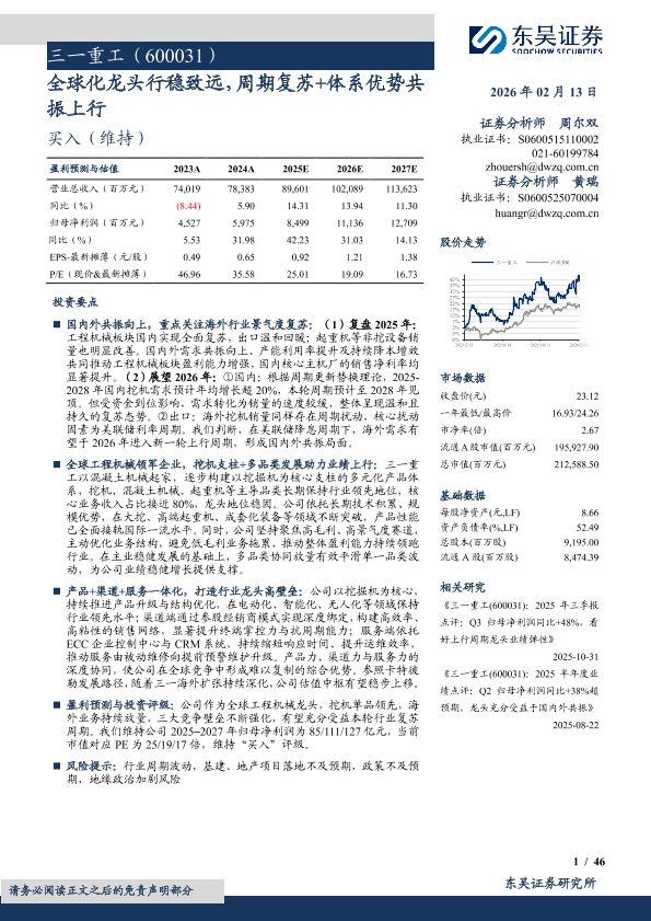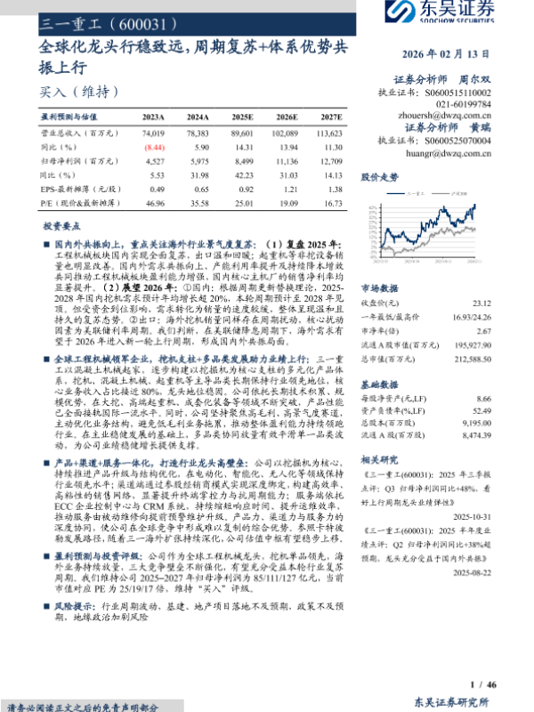 【东吴证券】【202602】三一重工(600031):全球化龙头行稳致远,周期复苏+体系优势共振上行-46页