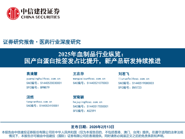 【中信建投证券】【202502】2025年血制品行业纵览:国产白蛋白批签发占比提升,新产品研发持续推进-71页