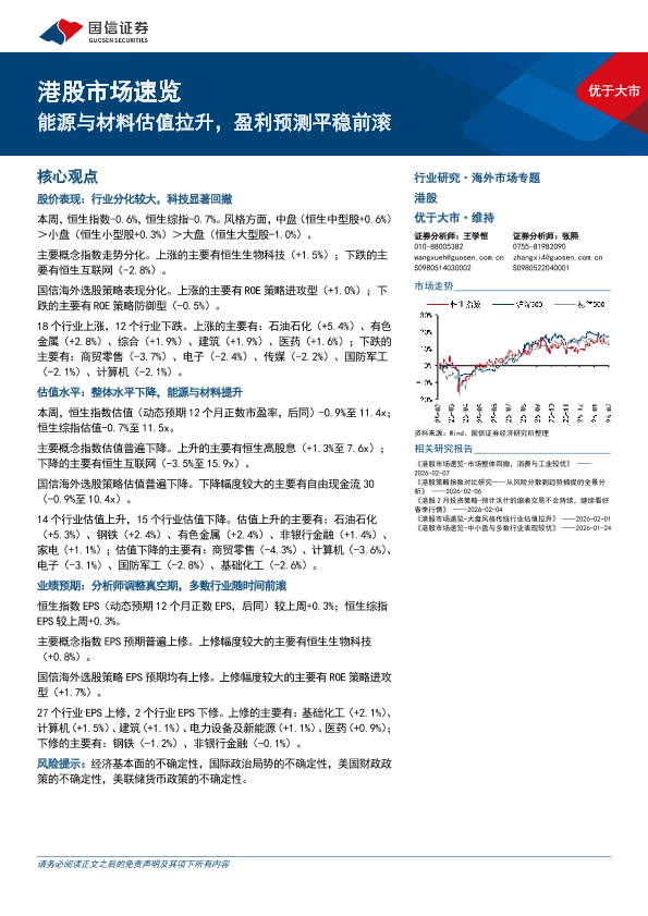 【国信证券】【202602】港股市场速览:能源与材料估值拉升,盈利预测平稳前滚-15页