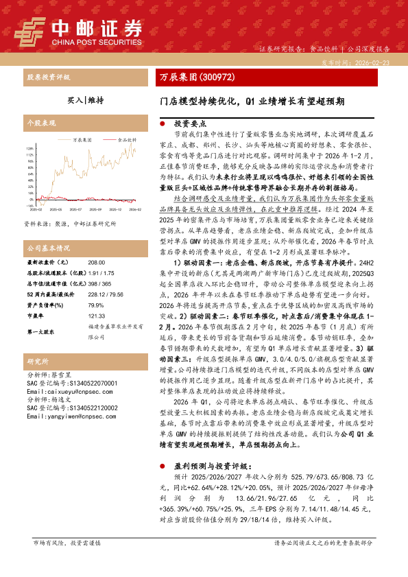 【中邮证券】【202602】万辰集团(300972)门店模型持续优化,Q1业绩增长有望超预期-17页