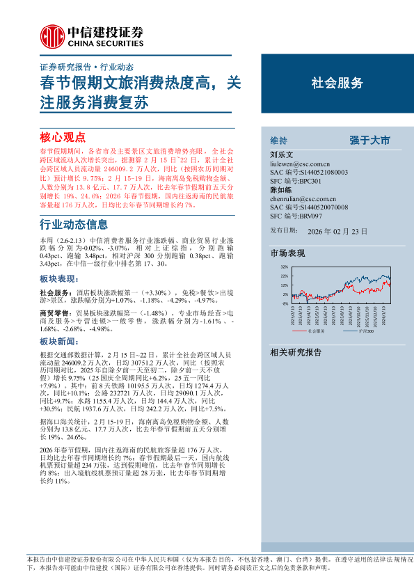 【中信建投证券】【202602】社会服务行业:春节假期文旅消费热度高,关注服务消费复苏-34页