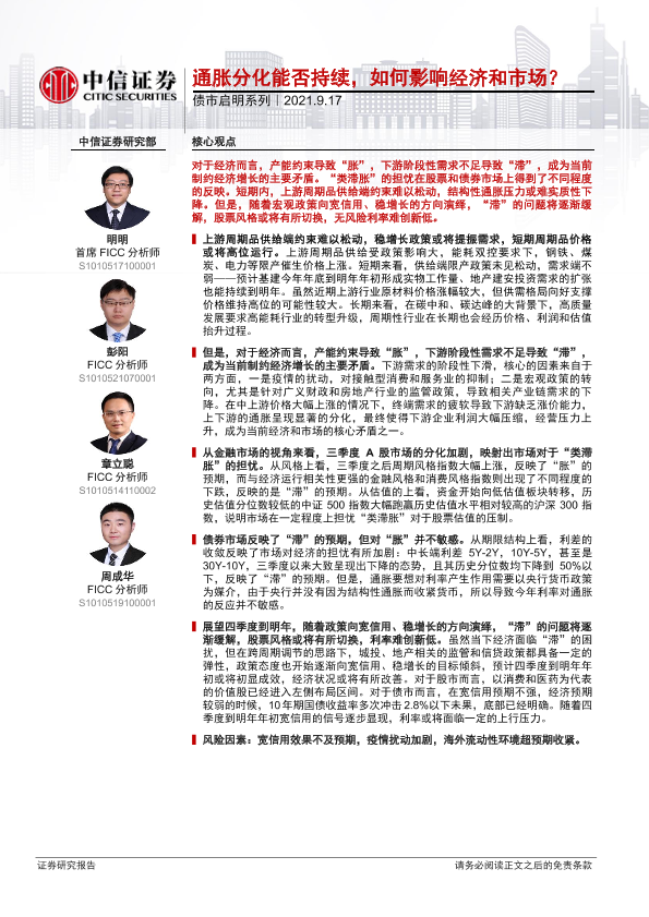 【中信证券】【20210917】通胀分化能否持续,如何影响经济和市场?-29页