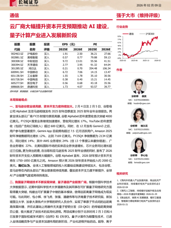 【长城证券】【202602】云厂商大幅提升资本开支预期推动AI建设,量子计算产业进入发展新阶段-16页