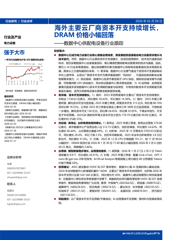 【爱建证券】【202602】数据中心供配电设备行业跟踪:海外主要云厂商资本开支持续增长,DRAM价格小幅回落-15页